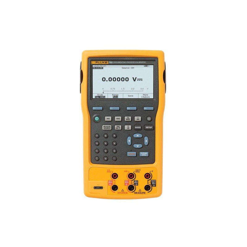 The Fluke 753 Documenting Process Calibrator is a multifunction handheld instrument designed for accurate calibration of industrial process devices. It combines signal measurement, sourcing, and automatic documentation in a single unit, supporting voltage, current, temperature, resistance, frequency, and pressure (with modules). The Fluke 753 improves field calibration efficiency while ensuring traceable and repeatable results in process control and maintenance applications.