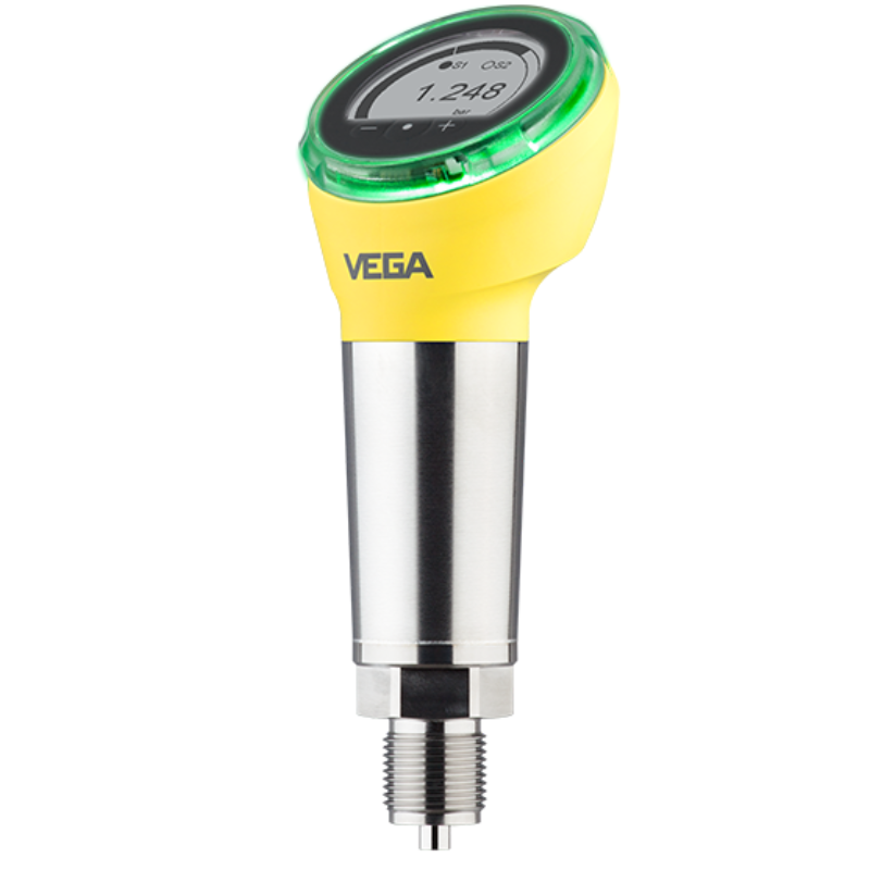 VEGABAR 38 is a universal pressure transmitter with ceramic measuring cell for measuring gases, vapours and liquids up to 130 °C. The optional universal connection for hygienic adapters ensures reduced installation effort and leaner stock keeping. The sensor has a display with on-site operation and coloured 360° status display.